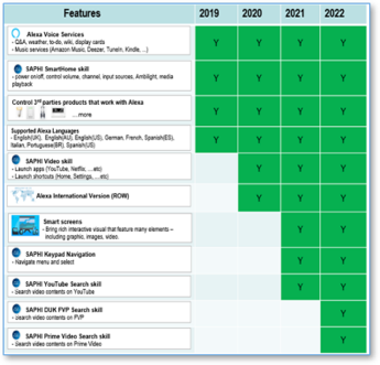 TPV一直与主要的智能家居技术伙伴合作致力于将物联网装置引进到我们的电视与AVA音频产品生态系统中. 我们在电视平台中开发一些应用程序纳入了可透过Google助理或Alexa语音操控的智能家居相关功能. 藉由这些应用程序, 我们的电视可成为居家空间中相关物联网装置的操控媒介.