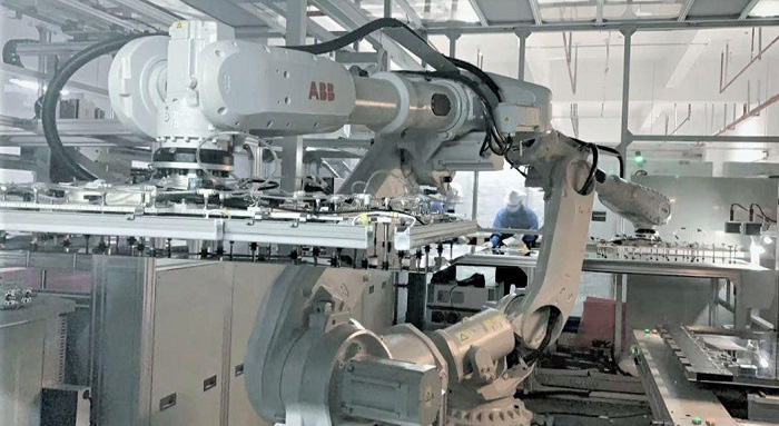 采用机器人替代人工,实现搬运和组装自动化,提升生产效率,并通过12个CCD视觉精准定位,保证贴合精度(精度可以达到0.1mm),始终把质量保证放在第一位。